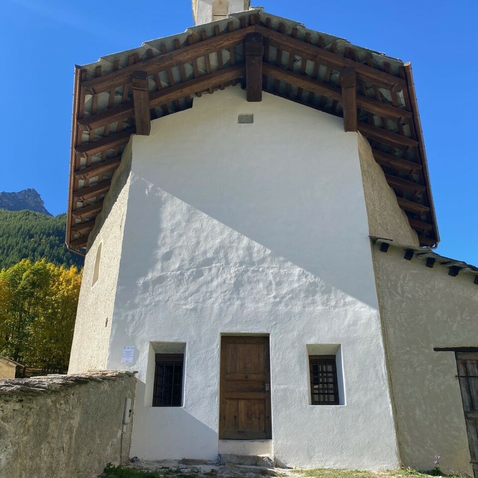 L'anno 1872 una valanga primaverile, scesa lungo l'alveo del torrente del Pelvo, raggiunge l'edificio di culto provocando qualche danno. Seguiranno gli interventi di riparazione e l'esecuzione della pala tuttora all'altare maggiore in stucchi a finto marmo.