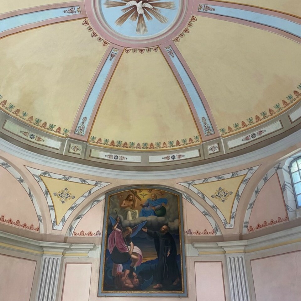 La conformazione attuale si deve alla campagna di restauri del 1847 dalla quale ci giungono i dipinti parietali del pittore Parini (?) profusi anche sulla cupola, impostata su sei pilastri e pennacchi angolari.