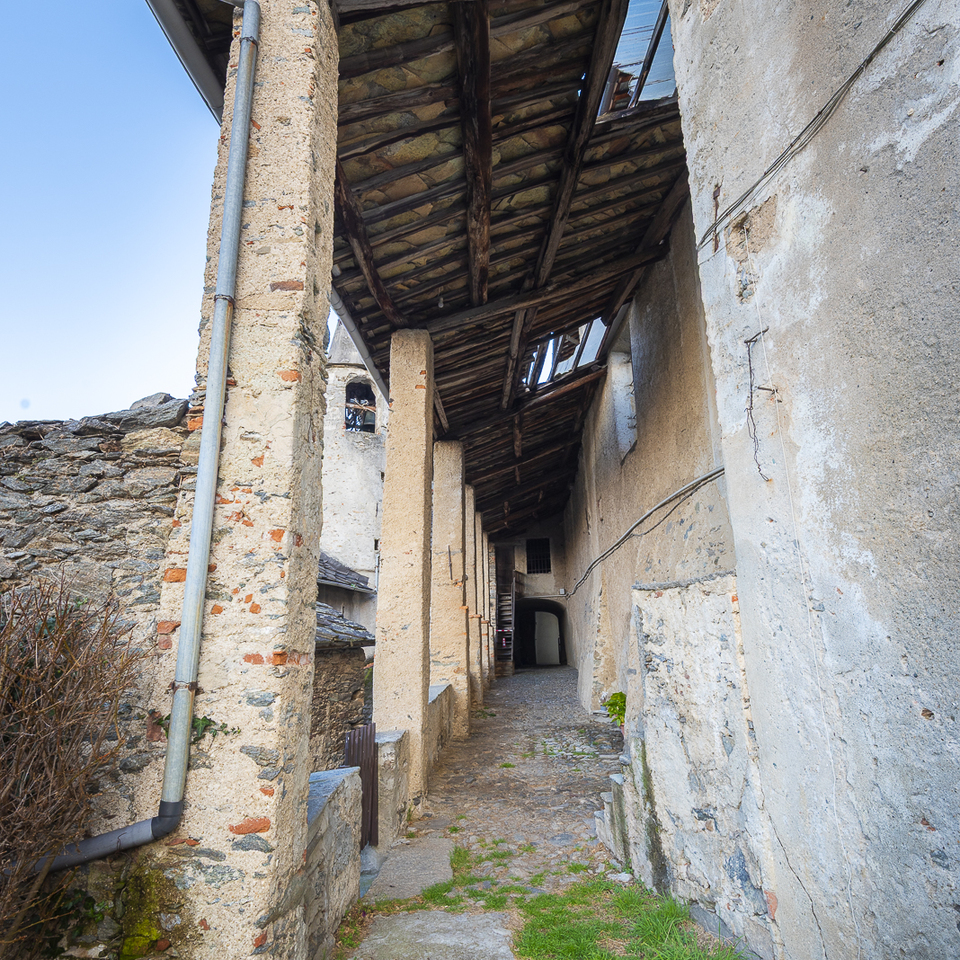Interessante testimonianza del passato è il camminamento con l’acciottolato che conduce all’ossario, forse ciò che resta della “Stra d’la Messa” che saliva da Doblazio, via Sangiapiana o arrivava da Piangiacolin.