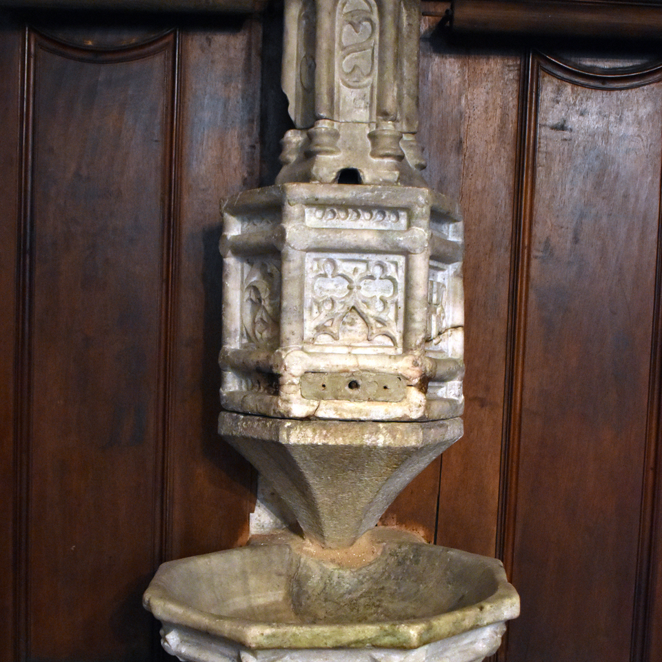 La sacrestia nuova, costruita nel 1728, ha le pareti rivestite con pannelli in noce e un ricco arredo costituito da un armadio con sportelli, sedili ed inginocchiatoi; In una nicchia si trova un’urna in marmo, forse trecentesca, con scolpiti i simboli araldici dei Valperga, dei Savoia e i nodi dell’Ordine della Santissima Annunziata. La tradizione la indica come dono del Conte Amedeo di Savoia, detto conte rosso, alla fine delle guerre del tuchinaggio.