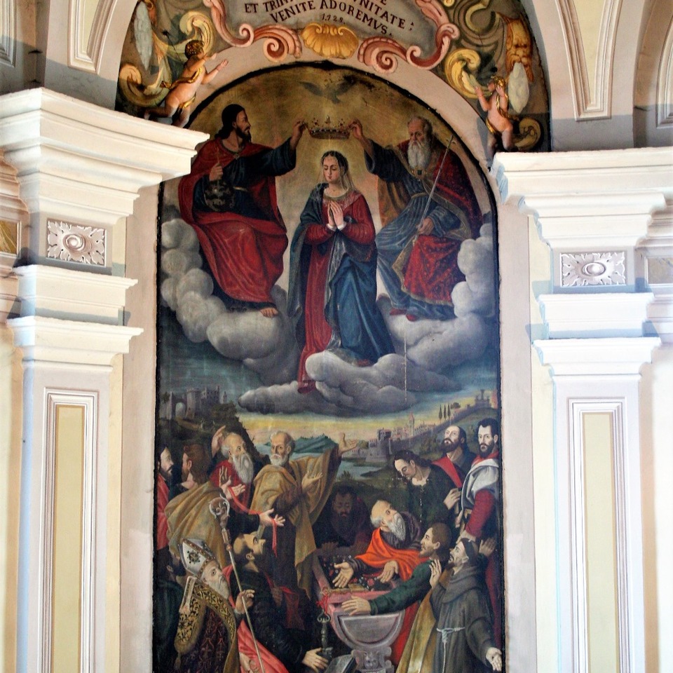Altre tele ad olio collocate nel presbiterio e nelle navate sono di interessante fattura. In particolare si segnala la pala d’altare dedicata all’Incoronazione della Vergine eseguita da