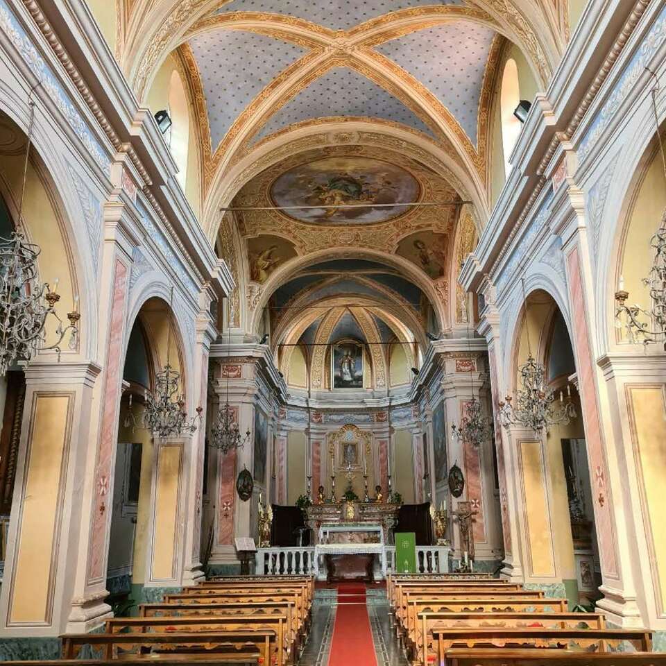 All’interno, all’altare di S. Desiderio è posta la statua del santo, acquistata nel 1927; le pitture murali sulle pareti del presbiterio (raffiguranti la Vocazione e il Martirio di S. Desiderio), così come quelli della volta (Madonna Assunta e gli Evangelisti) sono di Anacleto Laretto (1911-12). Le tele sugli altari sono quelle descritte nel 1714 all’interno della chiesa precedente ai lavori di rifacimento: una Vergine con il Bambino venerata dai Ss. Desiderio e Pietro di scuola Cacciana, la Madonna del Rosario coi Ss. Domenico e Caterina, la Madonna col Bambino e i Ss. Rocco, Antonio e Liberata.